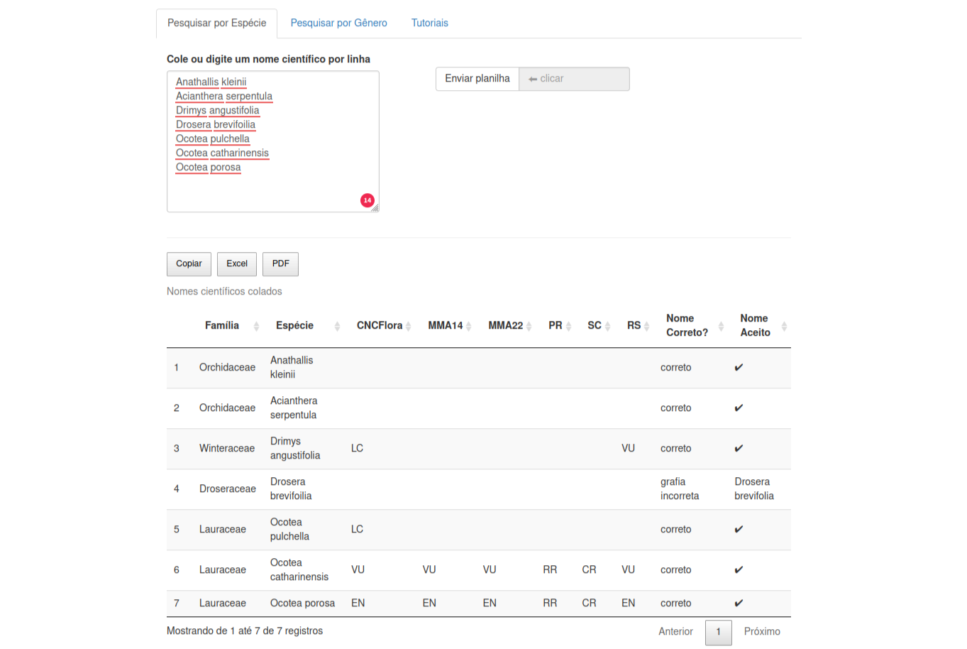 Ferramente de busca por espécies ameaçadas de extinção do sul do Brasil.